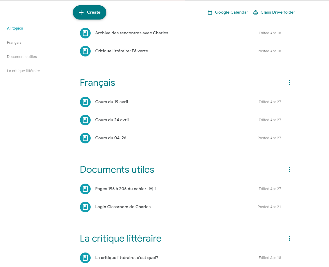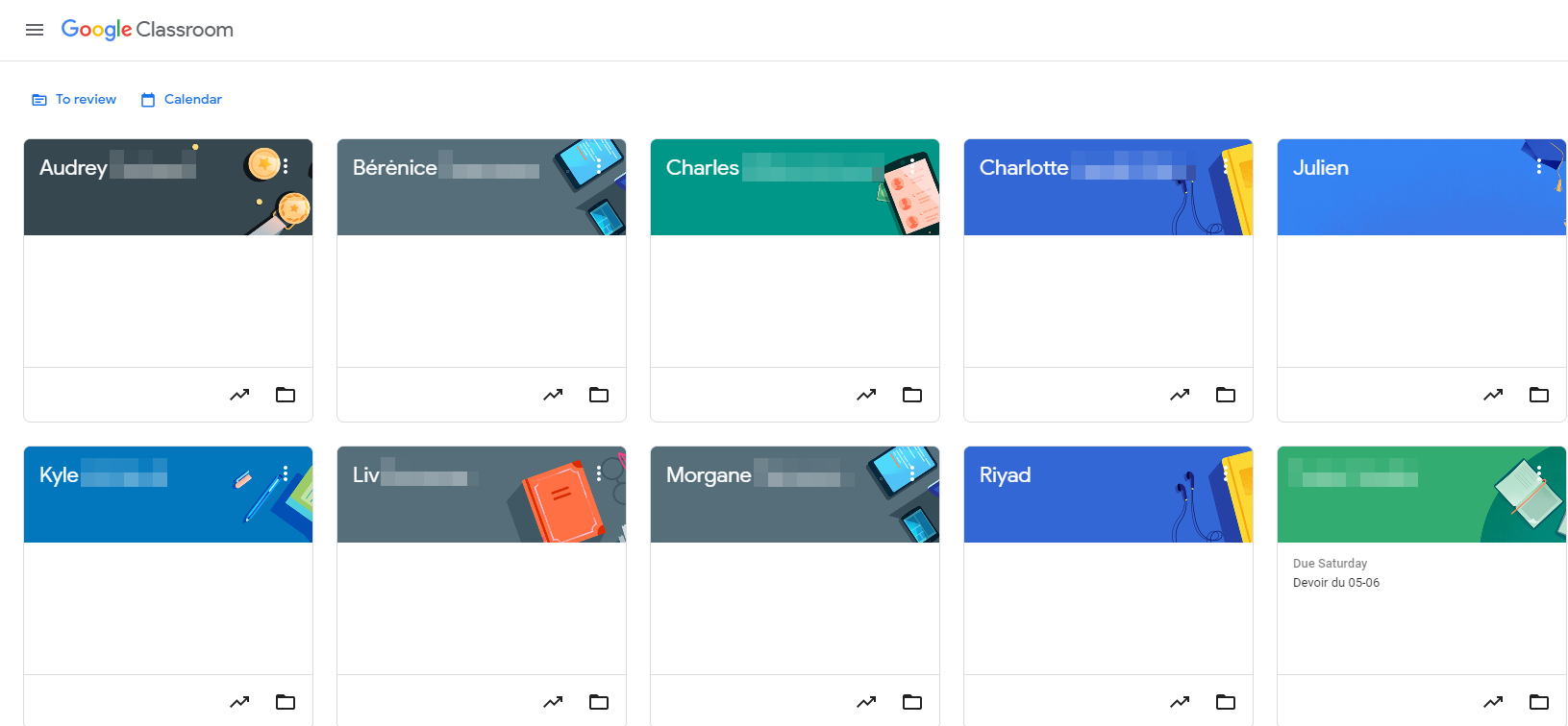 Chaque élève a son propre 'classroom' pour organiser le contenu des rencontres.